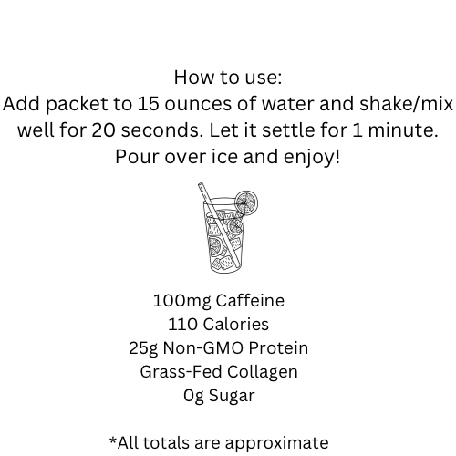 Suggested use: Pour packet into 15 oz. of water. Shake/mix well for 20 seconds. Let settle for 1 minute. Pour over ice and enjoy!